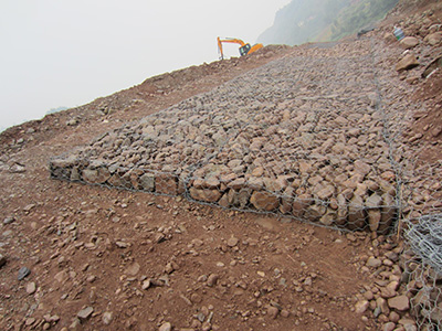 a) 用于裝填的石頭須堅硬,在水下不分解以及在護墊結構使用壽命之內不被風化。它的大小應在7 cm到15cm之間,可以有0.05的變化,但不得小于網孔。并且石頭不能太大,確保不同高度的護墊至少裝填兩層以上的石頭;